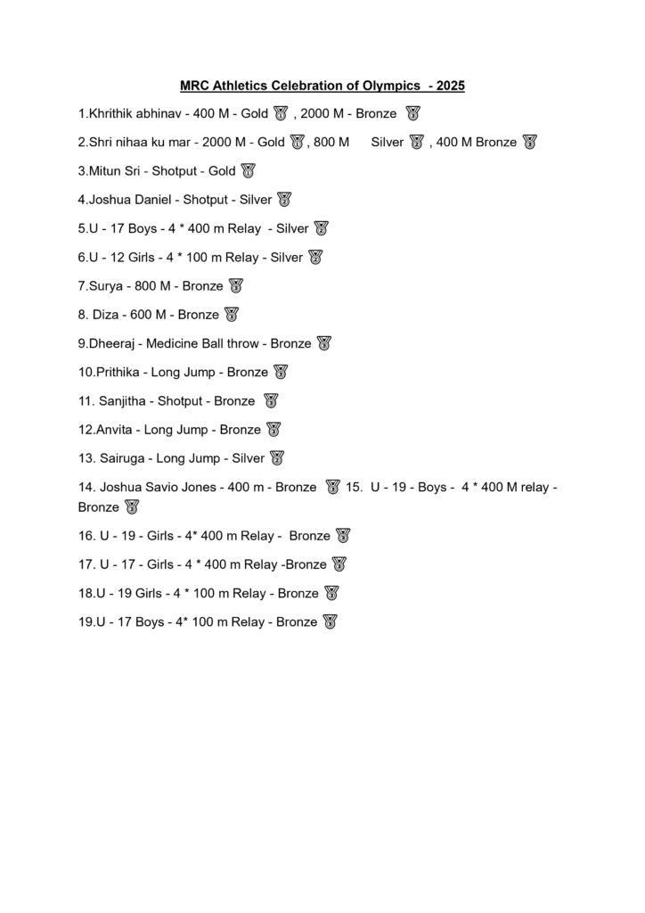 MRC Athletics Celebration of Olympics Results – 2025